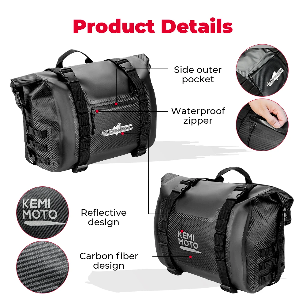 KEMIMOTO Motorcycle Saddlebags, 2Pcs Motorcycle Luggage Bag, Waterproof Saddle Bags Side Bags for Motorcycle Motorbike Travel, 1 Pair Detachable Bags Reflective Design Motorcycle Accessories Bag